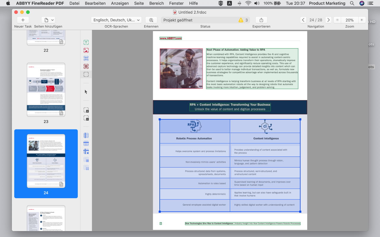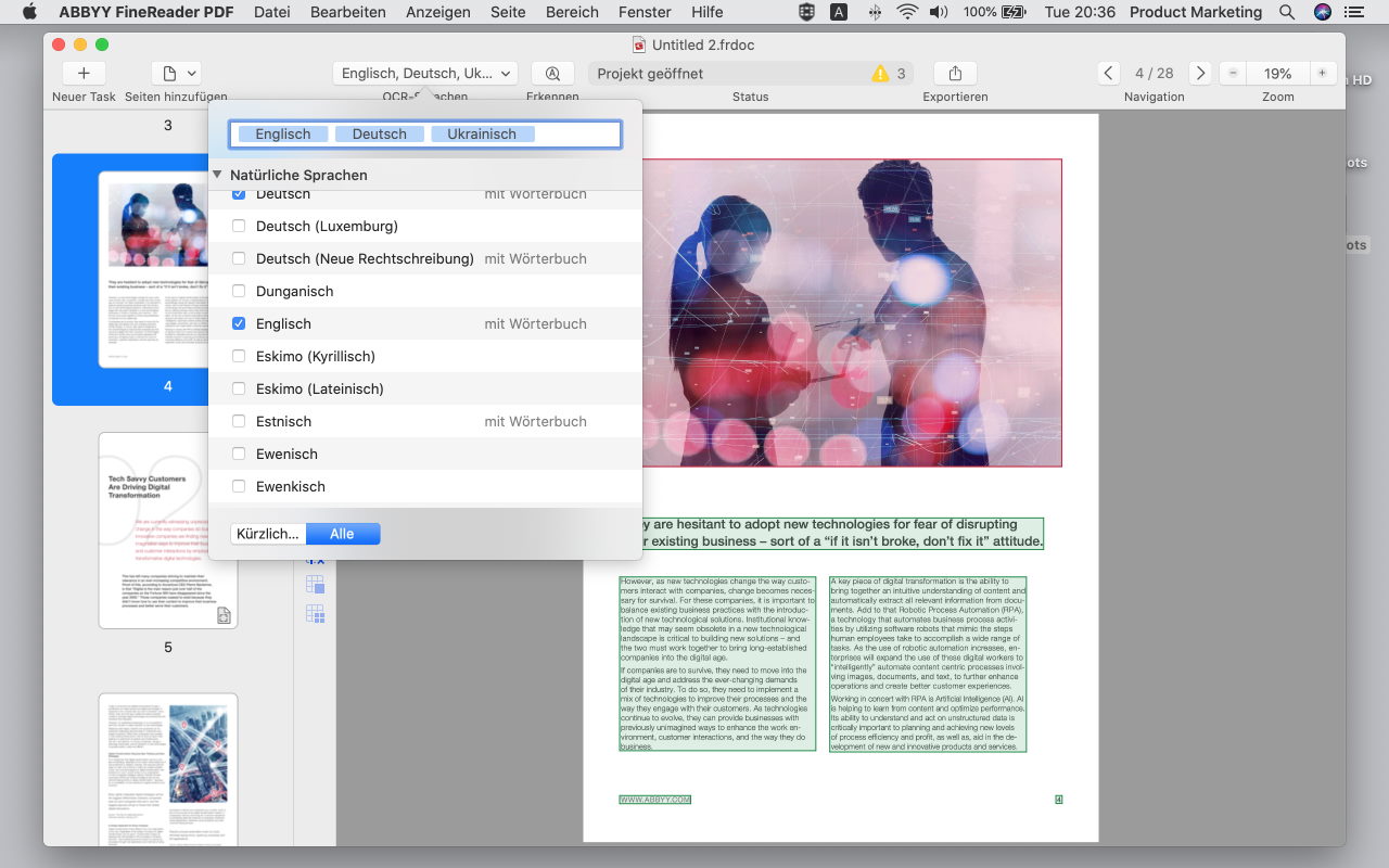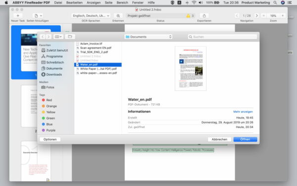 Es stehen eine Vielzahl von Software-Optionen zur Verfügung, um PDF-Dateien kostenlos zu öffnen oder einfach auszufüllen. Abbyy Finereader PDF for Mac erweitert jedoch die Funktionalität erheblich, wenn es darum geht, mit diesem beliebten Format zu arbeiten. Sie haben die Möglichkeit, Ihre Dokumentenprozesse zu optimieren und von einer effizienten Verwaltung zu profitieren. Dadurch können Sie immer den Überblick behalten und gleichzeitig wertvolle Zeit einsparen.