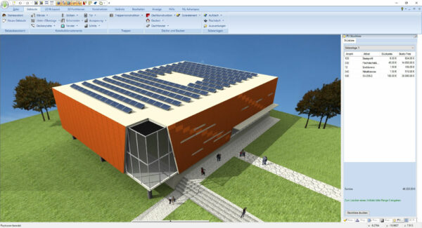 • Für Photovoltaik-Elemente (Aufdach-Anlagen) steht eine Rastereingabe zur Verfügung, um die Planung zu erleichtern.
