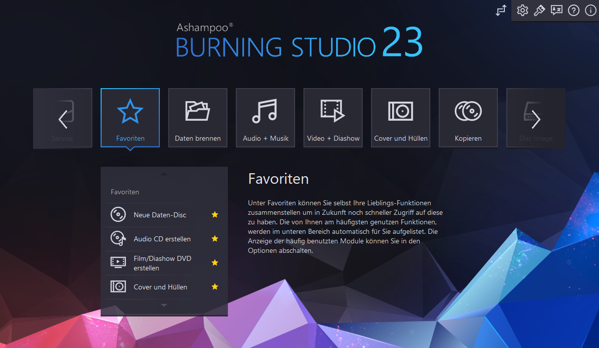 Verlassen Sie sich auf die umfangreiche Palette an Tools und Funktionen des Ashampoo Burning Studio 23