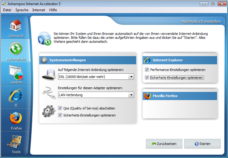 Die notwendigen Anforderungen für Ashampoo Internet Accelerator 3