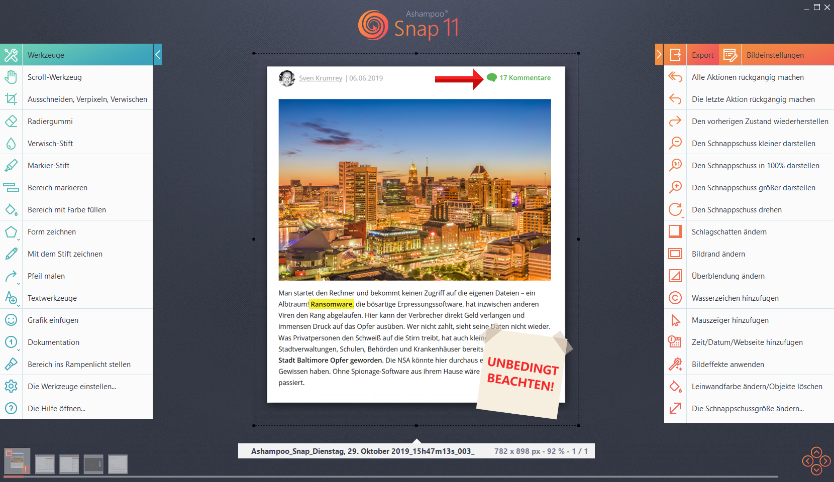 Erhalten Sie die effiziente Verarbeitung von Informationen mit dem Erwerb von Ashampoo Snap 11 über das Internet