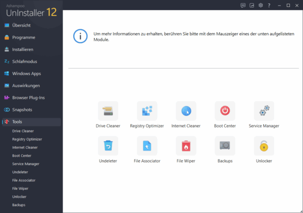 Der Ashampoo UnInstaller 12 ist speziell für Einsteiger geeignet, denn seine übersichtliche und animierte Benutzeroberfläche macht die Orientierung einfach. Außerdem sind die meisten Werkzeuge leicht zugänglich und viele alltägliche Aufgaben können sogar automatisch erledigt werden, ohne dass der Benutzer eingreifen muss. Das macht diese beliebte Lösung auch für technisch unerfahrene Personen attraktiv. Darüber hinaus unterstützt der Ashampoo UnInstaller 12 eine breite Auswahl an aktuellen Windows-Betriebssystemen. Sogar ältere Versionen wie Windows 7 und Windows 8.1 werden unterstützt. Aber auch unter Windows 10 oder Windows 11 funktioniert die neueste Version einwandfrei. Der Ashampoo UnInstaller 12 ist also auf dem neuesten Stand der Technik und ermöglicht Ihnen eine effiziente Arbeitsweise.