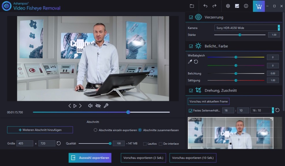 Es ist wirklich sehr praktisch, die Software Ashampoo Video Fisheye Removal zu verwenden.