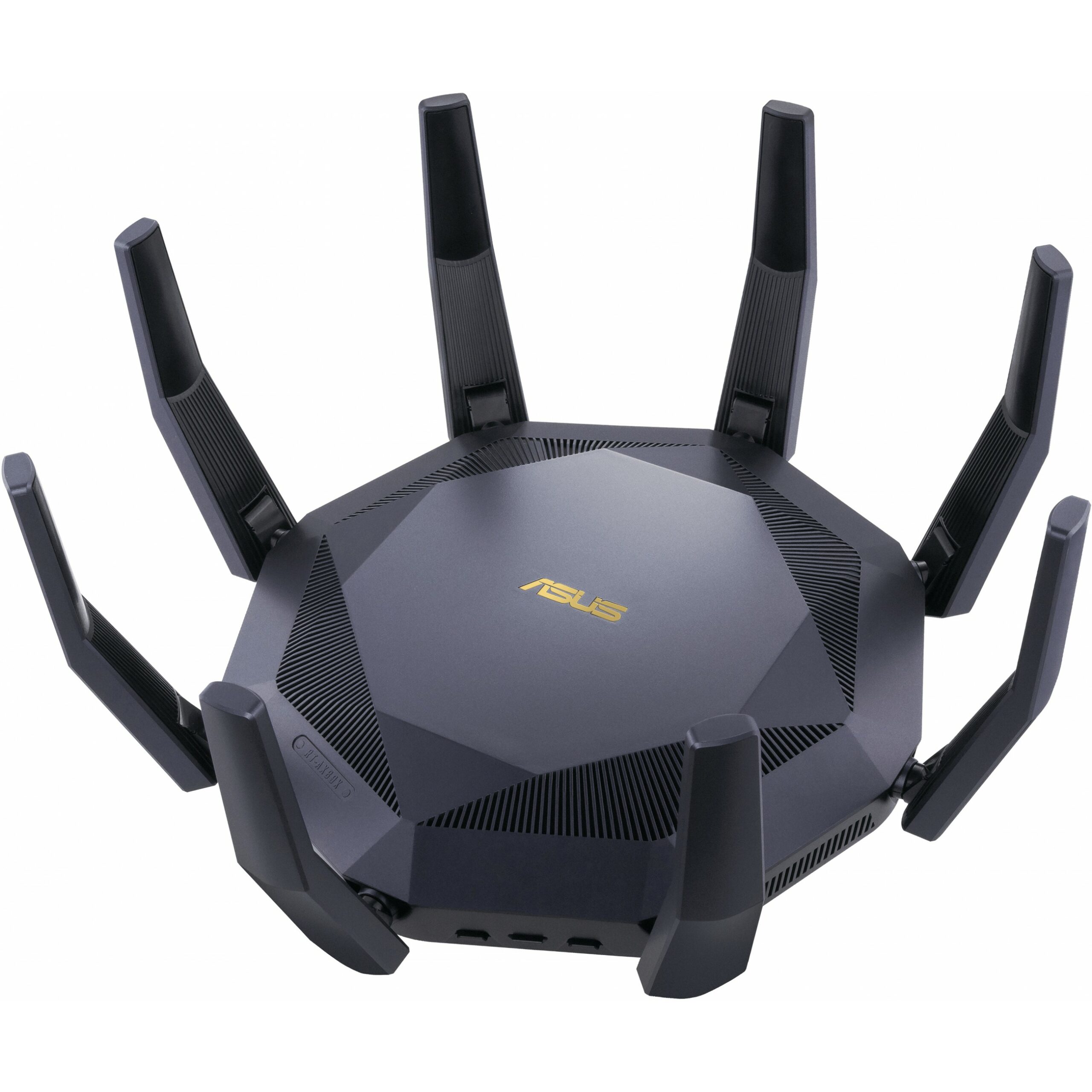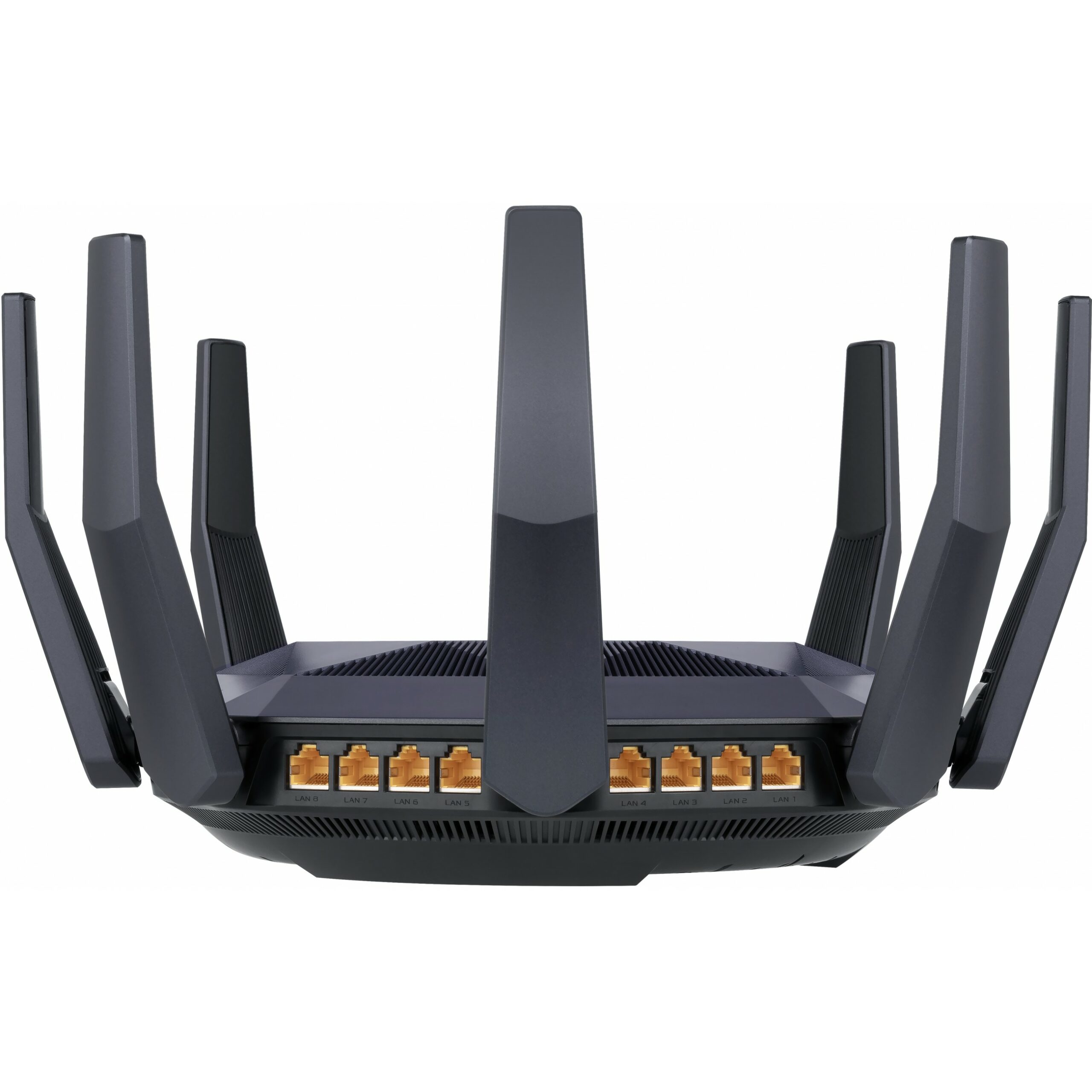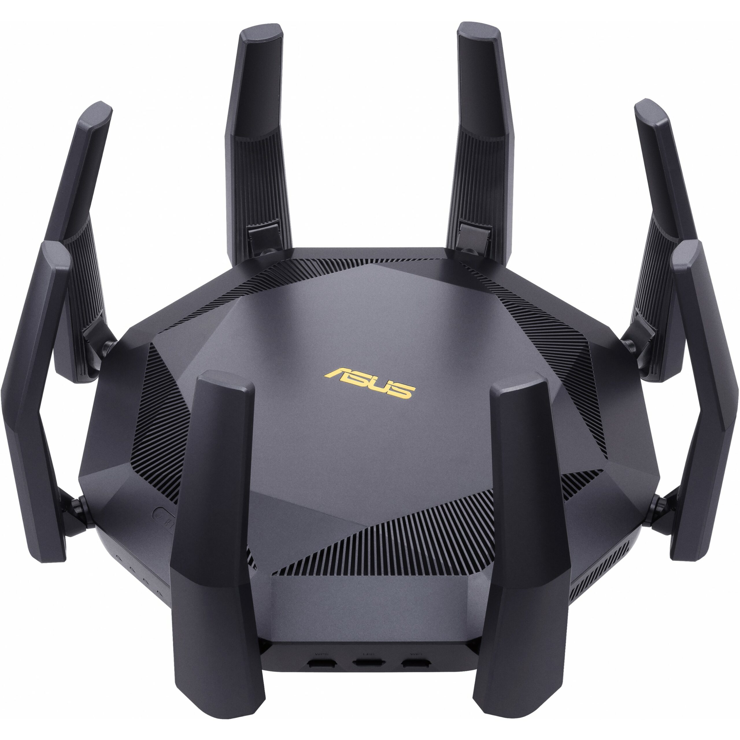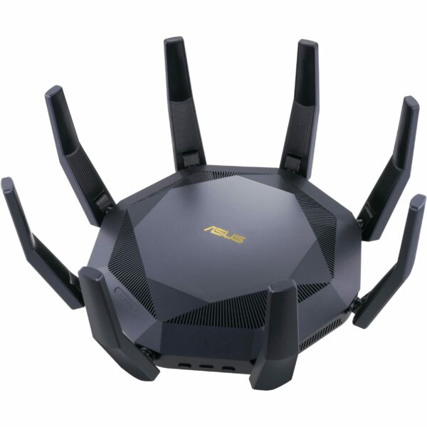 Der RT-AX89X ist ein 8×8 Dual-Band WLAN-Router mit 1024-QAM für deutlich schnellere drahtlose Verbindungen. Mit einer Gesamtnetzwerkgeschwindigkeit von etwa 6000Mbit/s – 1148Mbit/s im 2,4 GHz-Band und 4804Mbit/s im 5 GHz-Band – ist der RT-AX89X 2,8x schneller als 4×4 Dual-Band-Router, die den 802.11ac-Standard nutzen.