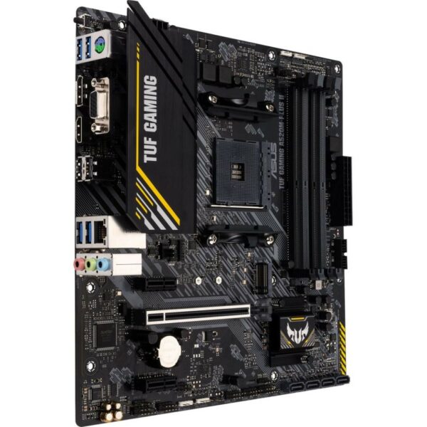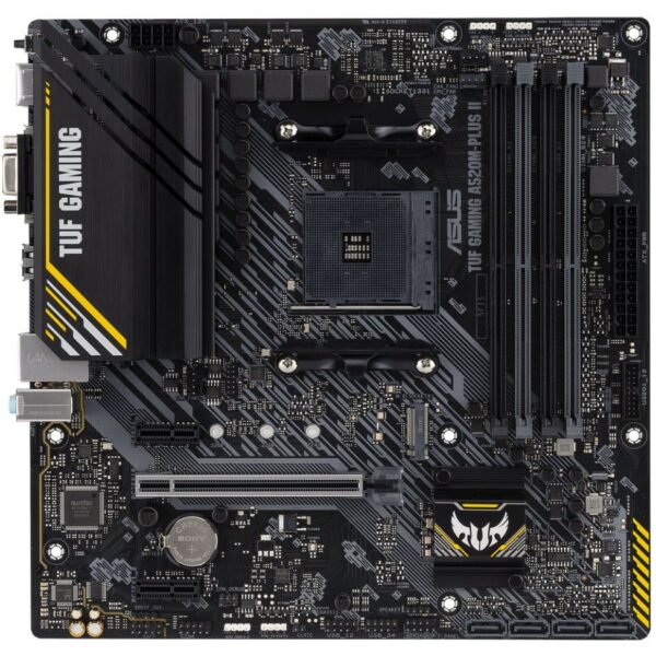 Das TUF Gaming A520M-Plus II konzentriert sich auf die wichtigsten Elemente der neuesten AMD-Plattform und kombiniert sie mit Gaming-freundlichen Funktionen und bewährter Langlebigkeit. Entwickelt mit Komponenten in Militärqualität, verbesserten Stromversorgung und einer umfassenden Auswahl an Kühloptionen, bietet das Mainboard eine erstklassige Performance bei unerschütterlicher Stabilität im Spiel.
