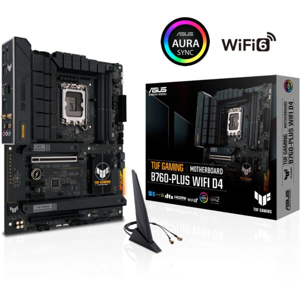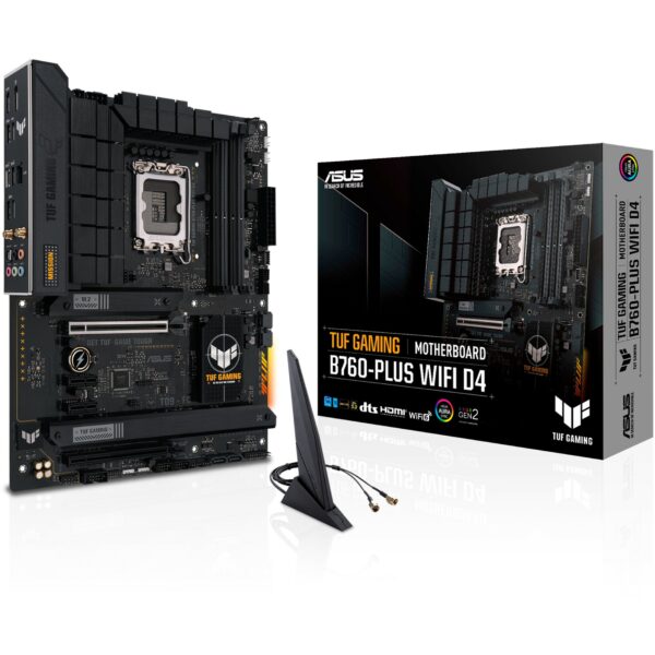 Das TUF-GAMING B760-PLUS D4 WiFi erreicht mit der neuesten Version von PCI Express neue Höhen des Leistungspotenzials, während ein Arsenal an USB-Anschlüssen zwei Typ-C-Anschlüsse umfasst und Thunderbolt 4 die Kompatibilität und Bandbreite noch weiter erhöht.