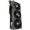 Die beiden Seitenlüfter drehen sich gegen den Uhrzeigersinn, um Turbulenzen zu minimieren und die Luftverteilung durch den Kühlkörper zu maximieren. Alle drei Lüfter kommen zum Stillstand, wenn die GPU-Temperaturen unter 50 Celsius liegen, sodass du weniger anspruchsvolle Spiele spielen oder leichte Aufgaben in relativer Ruhe erledigen kannst. Die Lüfter schalten sich wieder ein, wenn die Temperatur über 55 °C liegt, und stellen eine Geschwindigkeitskurve ein, die ein Gleichgewicht zwischen Leistung und Akustik für Arbeit und Spiel herstellt.