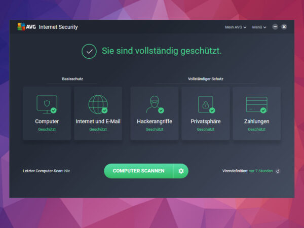 Die technische Ausstattung der AVG Ultimate 2026 Lösung befindet sich auf dem aktuellen Stand. Ein großer Vorteil besteht darin, dass umfangreiche Datenbanken zur Verfügung stehen, die eine Vielzahl von Bedrohungen und alle gegenwärtigen Gefahren erkennen können. Darüber hinaus ist es möglich, von modernen Funktionen und intelligenten Techniken zu profitieren, wodurch das Programm in der Lage ist, auch die neuesten Bedrohungen mühelos aufzuspüren. Dies sorgt für einen effektiven Schutz vor Viren, Trojanern und allgemein bekannter Malware. Zudem bietet AVG Ultimate 2026 auch einen effizienten Schutz vor komplexen Gefahren und Bedrohungen, beispielsweise durch die Überwachung des Netzwerkverkehrs und den Aufbau einer leistungsstarken Firewall.