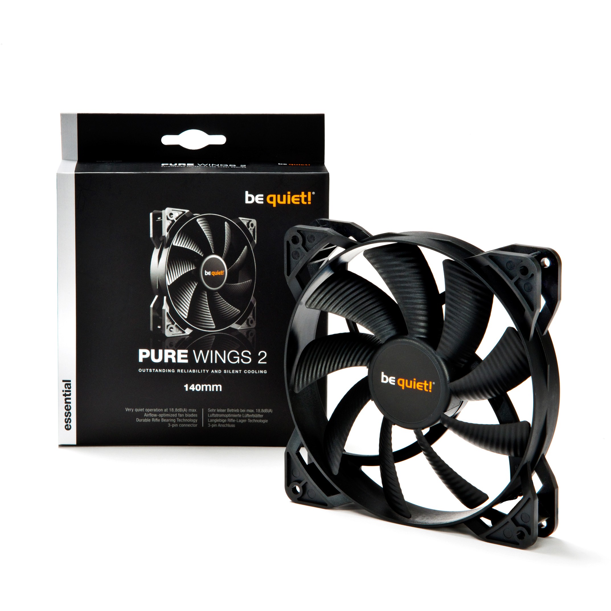 Höchste Zuverlässigkeit, geräuscharmer Betrieb und ein hervorragendes Preis-Leistungs-Verhältnis: Die Pure Wings 2 140mm Lüfter sind einzigartig in ihrer Klasse. Wenn es darum geht, die wohlbekannte und leise be quiet! Kühlung in Ihrem PC einzusetzen, sind die Pure Wings 2 einfach die perfekte Wahl.“ Leistungen