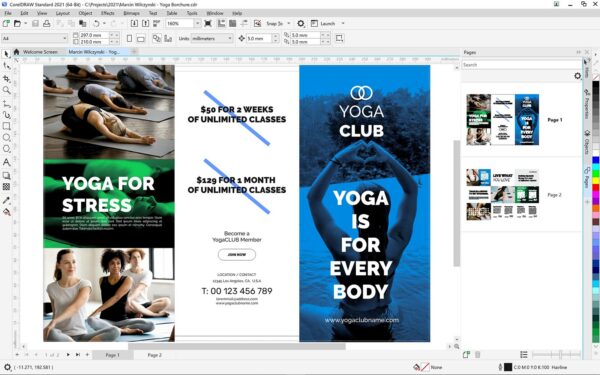 es gibt allerdings die option, coreldraw standard 2026 mit einer vielzahl weiterer tools und funktionen zu erweitern und zu nutzen. sie haben die möglichkeit, ihre kreative ader auszuschöpfen und layouts sowie erste designs für broschüren, flyer oder umfangreiche dokumente zu erstellen. passen sie die vorlagen und entwürfe individuell an ihre zielgruppe an und nutzen sie die ausgiebigen möglichkeiten, um ihre ideen umzusetzen. für eine präzise platzierung der gewünschten objekte können sie nützliche hilfsmittel wie lineale, gitter und hilfslinien verwenden. ergänzen sie ihre entwürfe millimetergenau mit texten, grafiken und bildern, um perfekt angepasste ergebnisse zu erzielen.