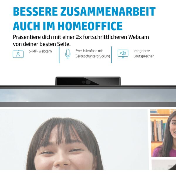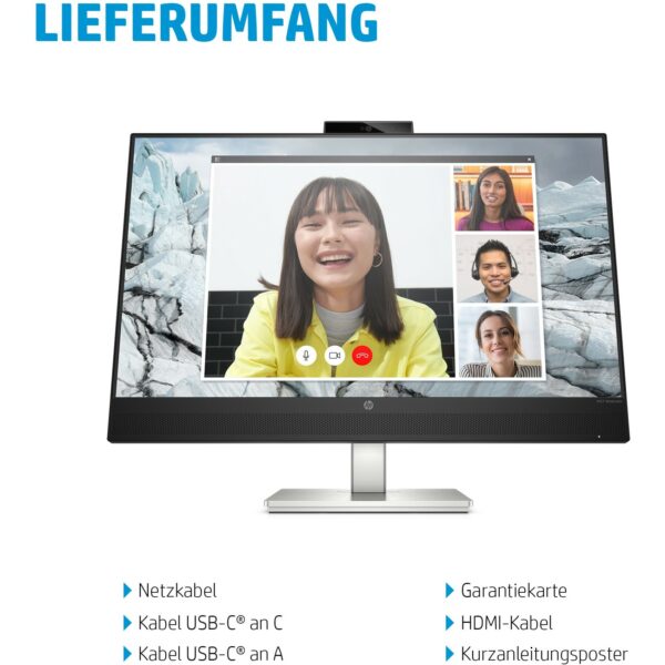 Der HP E27m G4 USB-C-Konferenzmonitor mit Zoom-Zertifizierung verfügt über eine integrierte 5-MP-Webcam mit einstellbarer Neigung, nach vorn gerichtete Lautsprecher und zwei Mikrofone für ein müheloses Konferenzerlebnis. Arbeiten Sie ungestört und vereinfachen Sie Ihr System mit nur einem USB-C®-Kabel1, das Ihren Laptop mit Daten, Videos sowie einer Leistung bis zu 65 W versorgt. Bildschirm