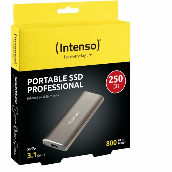 Erleben Sie blitzschnelle Datensicherung im kleinen Format! Mit der externen SSD Professional von Intenso speichern Sie Ihre Daten wie Dokumente, Fotos oder Videos in kürzester Zeit. Dank fortschrittlicher NVMe-Technologie und 10 Gbps Super Speed 3.1 Gen.2 Schnittstelle erreicht die externe SSD Professional blitzschnelle Übertragungsraten von bis zu 800 MB/s*. Solid State Drive