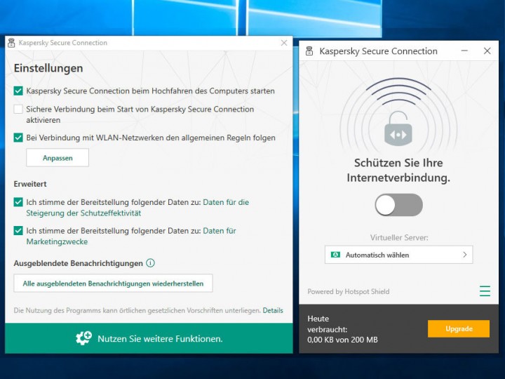 es gibt einen wesentlichen vorteil für personen und unternehmen, die sich dazu entscheiden, kaspersky vpn secure connection zu kaufen, im vergleich zu vielen benutzern, die auf den zusätzlichen schutz verzichten. egal ob beim betrachten von videos, in sozialen netzwerken, während des einkaufs oder insbesondere beim online-banking – virtual private networks (vpns) stellen sicher, dass unbefugte keinen zugriff auf die datenübertragung erhalten. die software selbst verwendet die aes-256-technologie, derzeit der höchste standard für private verschlüsselungslösungen.