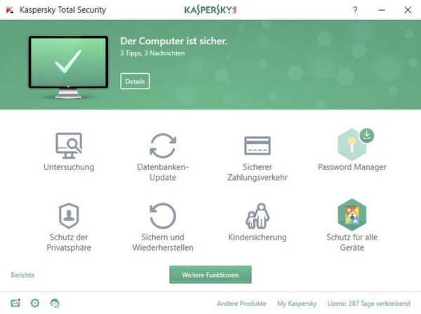 Kaspersky Total Security umfasst eine breite Palette an Funktionen