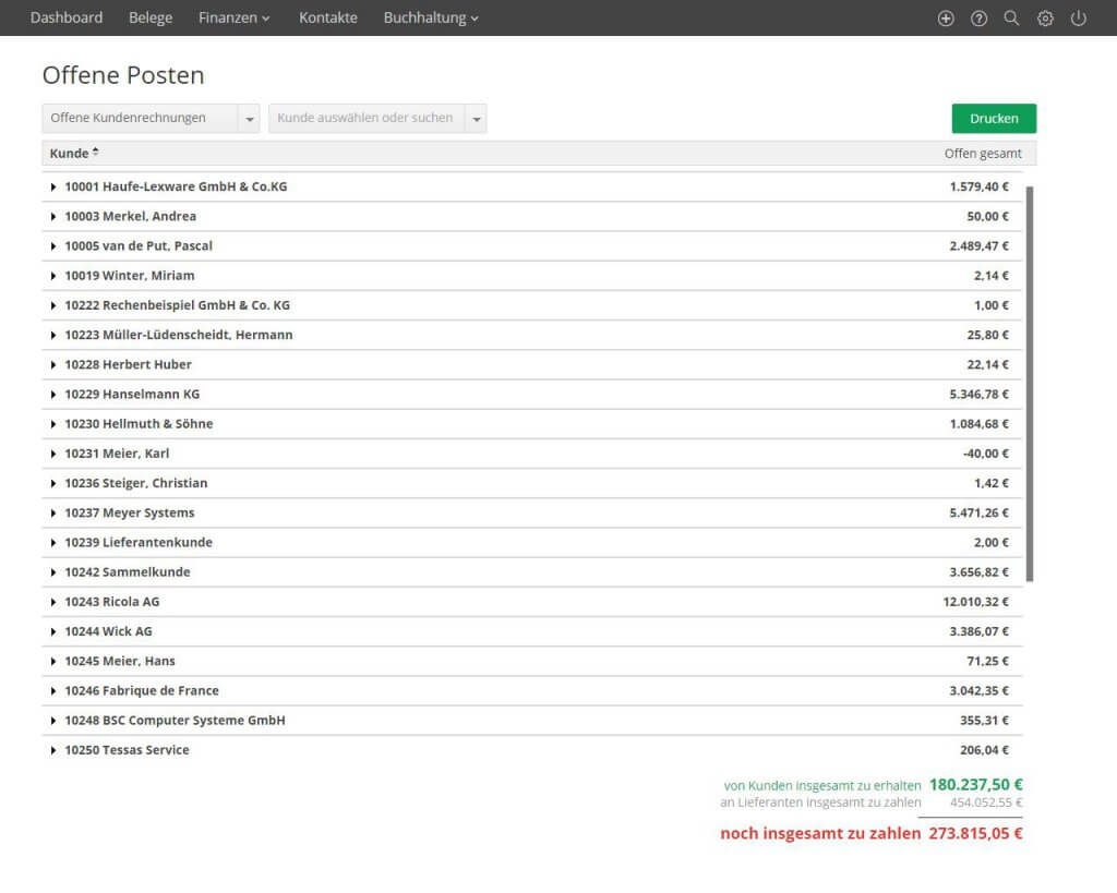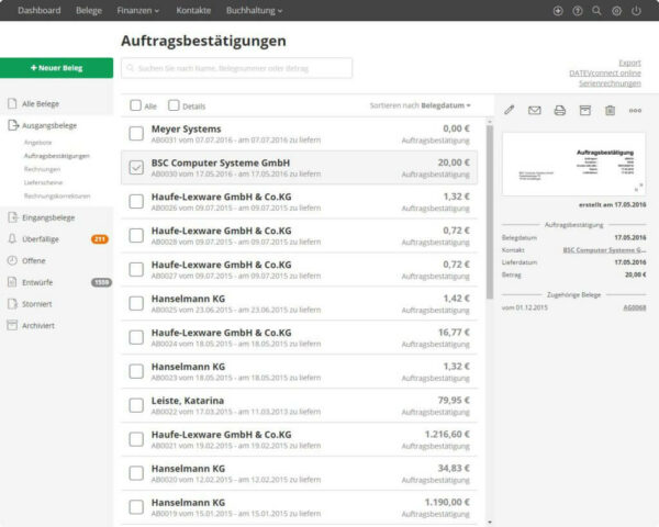 Es besteht die Option, die Daten problemlos an Ihren Steuerberater zu übermitteln. Alternativ kann ein kostenloser Direktzugang freigeschaltet werden, um dem Steuerberater den Zugriff auf die aktuellsten Daten zu ermöglichen und eine gezielte Unterstützung zu bieten. Eine effektive Zusammenarbeit erfordert den Datenzugriff von beiden Seiten. Wenn Sie eine professionelle Buchhaltungssoftware nutzen möchten, bietet sich die Lizenz für Rechnung & Finanzen von LexOffice als ideale und kostengünstige Lösung an, die Sie in unserem Shop erwerben können. Die umfassenden Funktionen im Bereich Kontaktmanagement ermöglichen Ihnen eine bequeme Erfassung und Pflege von Geschäftskontaktdaten. Zudem erkennt die Software sogar loyale Kunden, die zu höheren Umsätzen führen.