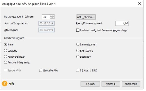 die verwaltung der betrieblichen vermögenswerte, wie beispielsweise computer, möbel, fahrzeuge oder produktionsmaschinen, muss gemäß den rechtlichen vorschriften erfolgen. diese vermögenswerte sind teil des unternehmenskapitals und werden im jahresabschluss berücksichtigt. bei unternehmensverkäufen oder der sicherung von krediten werden auch die vermögenswerte des unternehmens geprüft. durch abschreibungen wird der steuerliche gewinn verringert und damit auch die steuerbelastung des unternehmens reduziert. um alle steuerlichen vorteile nutzen zu können, setzt die lexware anlagenverwaltung pro 2026 auf aktuelle gesetzliche und steuerrechtliche vorgaben. die vermögenswerte verschleißen im laufe der zeit und verlieren an wert. dieser wertverlust bei vermögenswerten, wie beispielsweise bei der kilometerleistung eines firmenfahrzeugs oder dem alter eines computers, wird von der lexware anlagenverwaltung pro 2026 mit hilfe geltender gesetzestexte und bestimmungen ermittelt, um abschreibungen und zeitwerte zu berechnen.