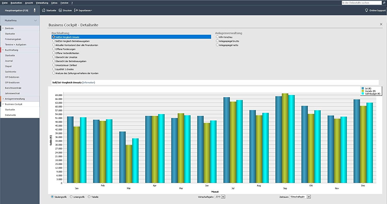 - Mittels den wirtschaftlichen Auswertungen hat man sämtliche Zahlen und Fakten inklusive anschaulicher Grafiken im Blickfeld.