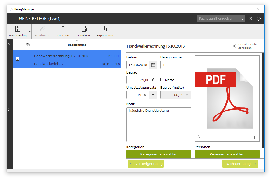 um eine erfolgreiche steuererklärung abzugeben, sind die richtigen belege oft von erheblicher bedeutung. im verlauf der monate und wochen können sich jedoch zahlreiche verschiedene dokumente in diesem bereich ansammeln. deshalb verfügt lexware quicksteuer deluxe 2026 über einen integrierten manager, der es ihnen einfach macht, die einzelnen belege zu verwalten. um dies zu erreichen, müssen sie die belege zunächst digitalisieren. dies kann problemlos mit einem herkömmlichen scanner erfolgen. danach haben sie die möglichkeit, die belege in verschiedenen formaten in den manager hochzuladen. die software unterstützt die speicherung im pdf-, jpeg- oder word-format. sie können die belege nach kategorie oder zweck sortieren und behalten dank lexware quicksteuer deluxe 2026 immer den überblick, wenn sie die entsprechenden belege dann direkt einreichen möchten.