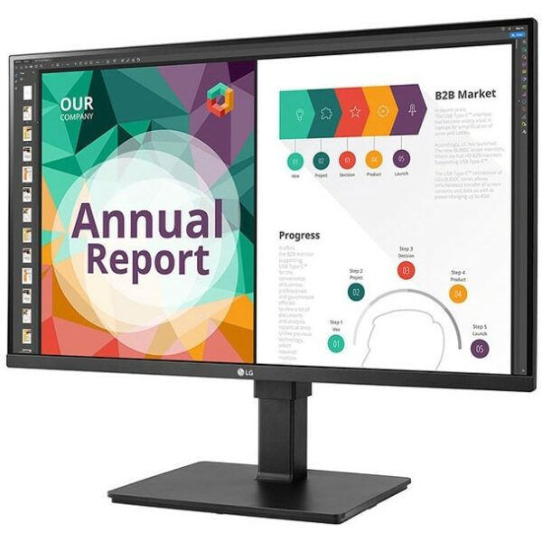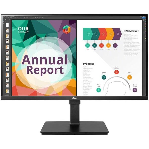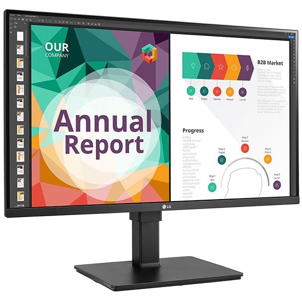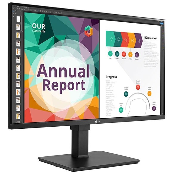 Der LG Monitor mit IPS-Technologie liefert eine klarere und konsistente Farbtreue. Er bietet visuellen Komfort bei der gemeinsamen Betrachtung von Diagrammen und Berichten und präsentiert klare Bilder aus weiten Winkeln.