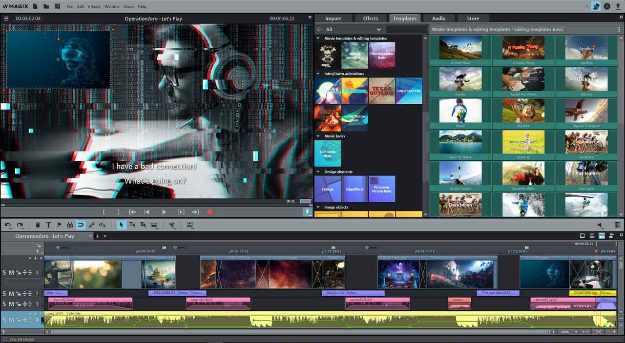 sie haben die möglichkeit, die einzelnen spuren nach belieben anzuordnen, zu vervielfältigen und umzusortieren. wenn sie das projekt visuell organisieren möchten, können sie die objekte und spuren einfärben, um die übersichtlichkeit zu verbessern. um schnellere ergebnisse zu erzielen, stehen ihnen praktische assistenten zur verfügung, die beim importieren, optimieren und schneiden helfen. die software bietet verschiedene optionen zur optimierung, um farben anzupassen, die farbstimmung zu ändern und weniger erfolgreiche aufnahmen zu verbessern.