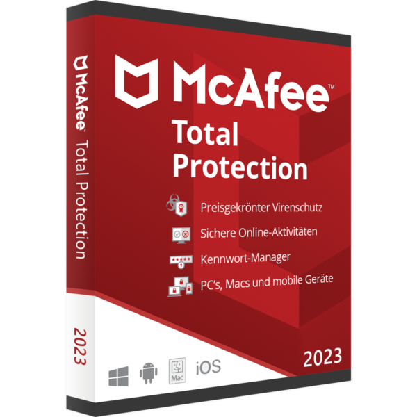 Willkommen bei software-kaufen24. Wir haben eine große Auswahl an günstigen Angeboten für McAfee Total Protection 2026 Lizenzsoftware. Unsere Produkte ermöglichen Ihnen ein sicheres und problemloses Surfen und Arbeiten im Internet. Entdecken Sie auch McAfee Internet Security 2026 oder McAfee Antivirus Plus 2026 in unserem Online-Shop. Nehmen Sie sich Zeit, um alle Artikel zu durchstöbern und treffen Sie dann Ihre Entscheidung für das gewünschte Produkt. Wenn Sie Fragen zur Bestellung haben oder Unterstützung bei der Aktivierung des Produkt-Keys benötigen, steht Ihnen unser erfahrener Kundendienst zur Verfügung. Sie können uns von montags bis freitags während unserer Geschäftszeiten per E-Mail, Telefon oder Live-Chat kontaktieren. Wir sind hier, um Ihnen zu helfen. Nach Zahlungseingang senden wir Ihnen den Produkt-Schlüssel umgehend per E-Mail zu. Sie erhalten Ihren Schlüssel innerhalb von maximal 30 Minuten in Ihrem Postfach. Wir freuen uns auf Ihre Bestellung.