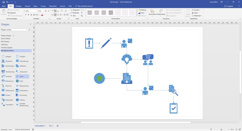 es ist natürlich eine subjektive frage, wie einfach visio professional 2019 zu bedienen ist. die software wurde jedoch absichtlich so gestaltet, dass sie benutzerfreundlichkeit bietet. dazu verwendet sie das vertraute office-design mit den wechselnden menübändern, was es benutzern erleichtert, sich intuitiv zurechtzufinden. darüber hinaus bietet die software eine verbesserte unterstützung für toucheingaben mit dem finger oder einem digitalen stift wie dem surface pen. das bedeutet, dass diagramme oder anmerkungen direkt per hand beschriftet werden können. durch die verbesserung der toucheingabe wird auch die funktionalität der softwarelösung verbessert, da das hinzufügen spezieller formen oder das einfärben sehr einfach ist.