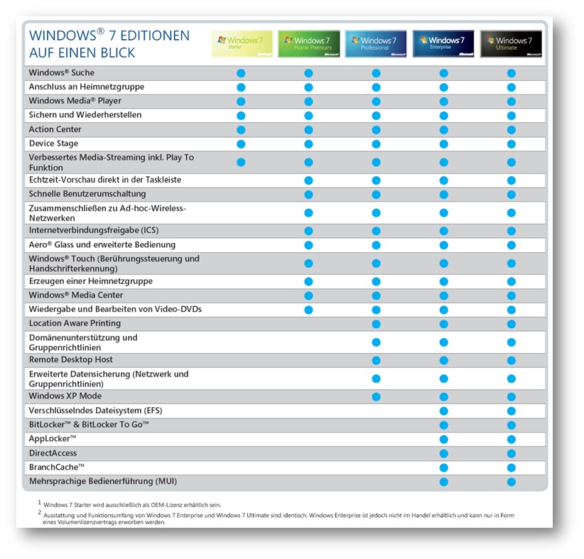 Hier sind alle einzigartigen Features, die in Microsoft Windows 7 Ultimate zur Verfügung stehen: