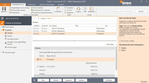 Optimales Erfassen und Durchführen von Arbeit mit WISO Fahrtenbuch 2022, auch während der Reise