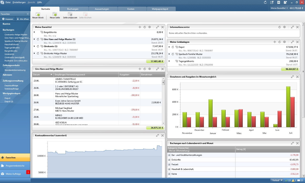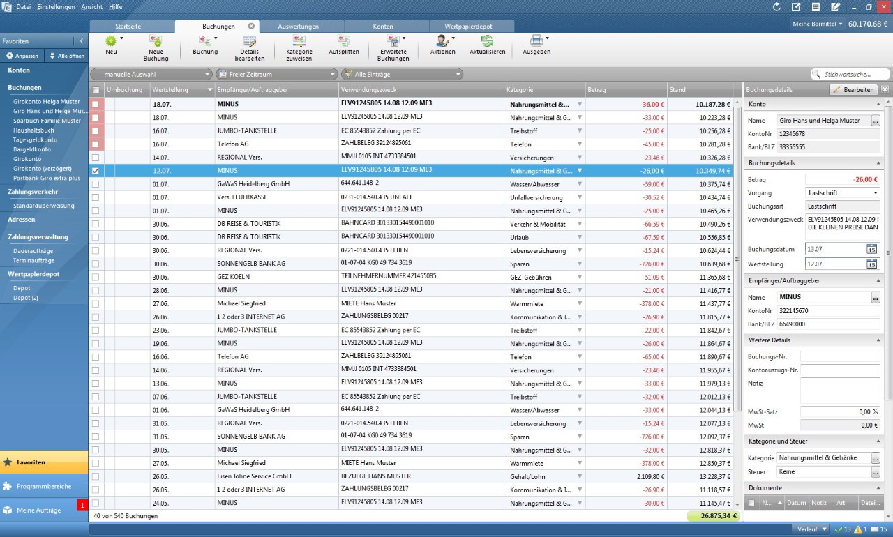 nachdem sie erfolgreich die verbindung zwischen ihrem bankkonto und der software wiso mein geld 2023 hergestellt haben, erhalten sie eine umfassende zusammenstellung aller aktuellen buchungen auf der startseite. dadurch ist es ihnen möglich, auf einen blick sämtliche ausgehende lastschriften zu erkennen. zudem erfolgt eine direkte anzeige des kontostands ihrer verschiedenen konten. eine zeitaufwendige suche oder das separate einloggen in verschiedene konten gehört somit der vergangenheit an. durch die nutzung von wiso mein geld 2023 können sie sowohl zeit als auch mühe einsparen.