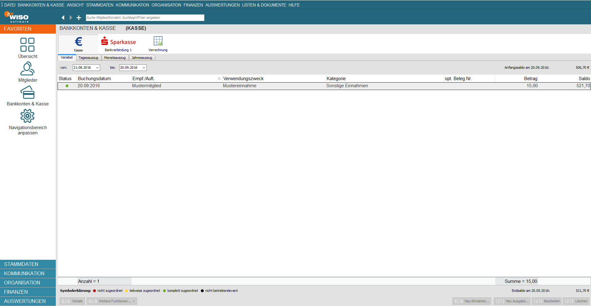 Im Hinblick auf die finanzielle Komponente, die eine wichtige Rolle im Verein spielt, bietet Ihnen die beliebte Software WISO MeinVerein XS 365 eine breite Palette an Produkten und Funktionen. In den meisten Fällen ist die regelmäßige Zahlung der Mitgliedsbeiträge für das Vereinswesen von großer Bedeutung. Mit Hilfe der WISO MeinVerein XS 365-Software können Sie sich von der zeitaufwändigen Abwicklung entlasten, da Ihnen eine Vielzahl von Aufgaben abgenommen wird. Dank einer integrierten Schnittstelle für einfaches Online-Banking und Zahlungsverwaltung können alle Zahlungen von den Mitgliedern bequem per Lastschrift eingezogen werden. Dadurch bleiben Ihre Buchungen immer auf dem aktuellsten Stand.