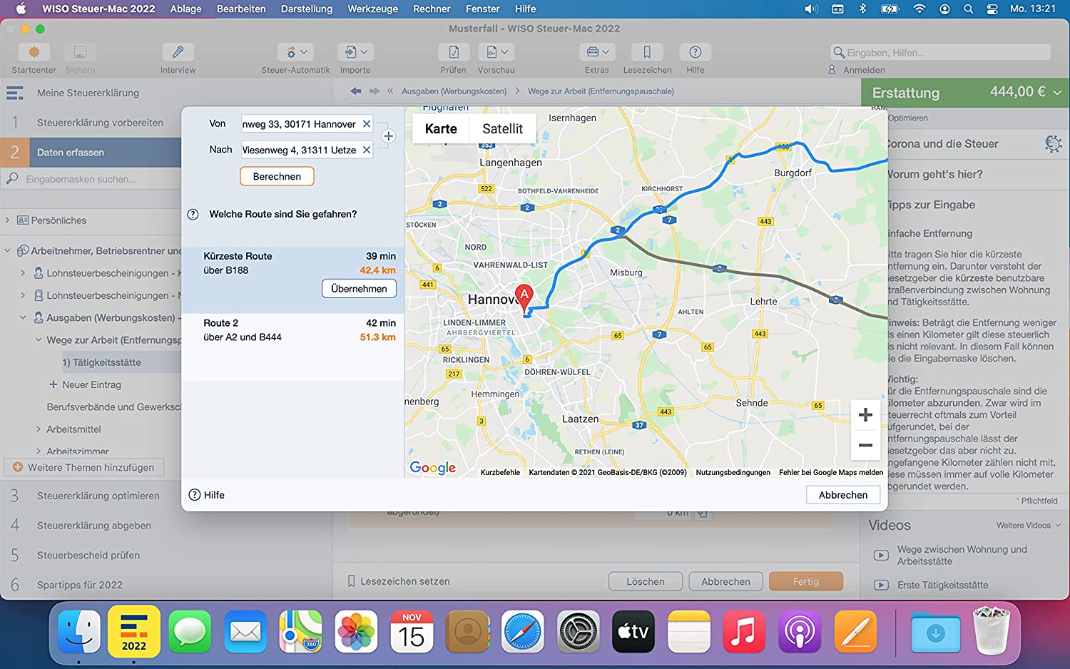 die software wiso steuer-mac 2022 verfügt über eine beeindruckende funktionalität, um wesentliche zahlen automatisch zu berechnen. dadurch erhalten sie sofortige informationen darüber, ob sie mit einer möglichen steuerrückerstattung rechnen können und in welcher höhe. mithilfe der steuersparhilfe werden ihnen außerdem wertvolle ratschläge und techniken zur verfügung gestellt, um noch mehr geld von der finanzbehörde zurückzubekommen. des weiteren erfolgt eine kontinuierliche überprüfung ihrer eingaben in den verschiedenen formularen, und eventuelle fehler oder inkonsistente daten werden unmittelbar angezeigt. so haben sie die möglichkeit, diese zu korrigieren und anzupassen. es ist gleichermaßen bedeutend zu beachten, dass es in wiso steuer-mac 2022 eine vielfältige auswahl an zusätzlichen rechnern gibt, die zur nutzung bereitstehen. sie können beispielsweise auf eine umfangreiche auswahl an zubehör für ein fahrtenbuch vertrauen. zudem stehen ein abfindungsrechner und ein arbeitslosenrechner für unterschiedliche daten und fälle zur verfügung.