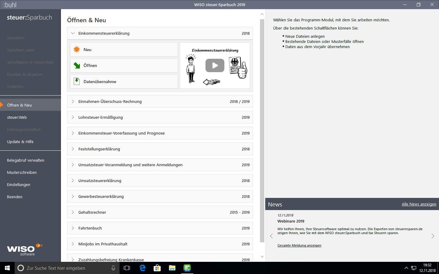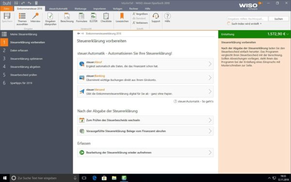 WISO steuer Sparbuch 2019 Steuerjahr 2018 | Windows
