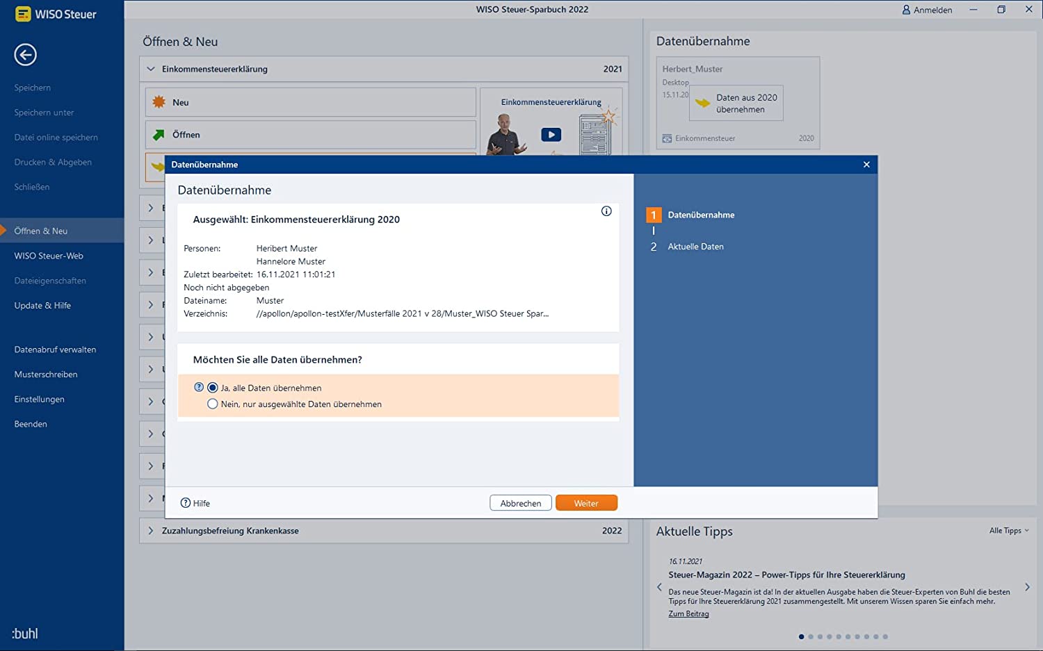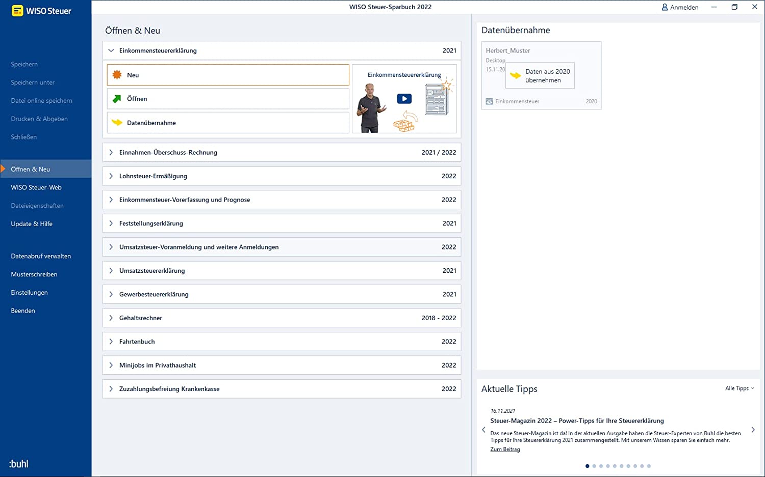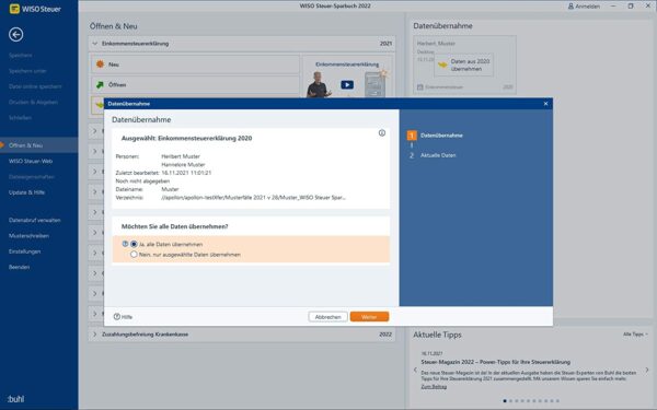 wenn sie die steuererklärung für das jahr 2022 mithilfe des wiso steuer sparbuchs erstellt haben und diese problemlos übermitteln möchten, können sie dies mit nur wenigen schritten erledigen. dank der benutzerfreundlichen oberfläche haben sie jederzeit den überblick über den übermittlungsstatus und erhalten eine bestätigung über den rechtzeitigen eingang. zusätzlich wird das programm wiso steuer sparbuch stets auf dem neuesten stand gehalten. der hersteller buhl software gewährt eine updategarantie für das steuerjahr 2021, sodass etwaige änderungen zeitnah per update bereitgestellt werden.