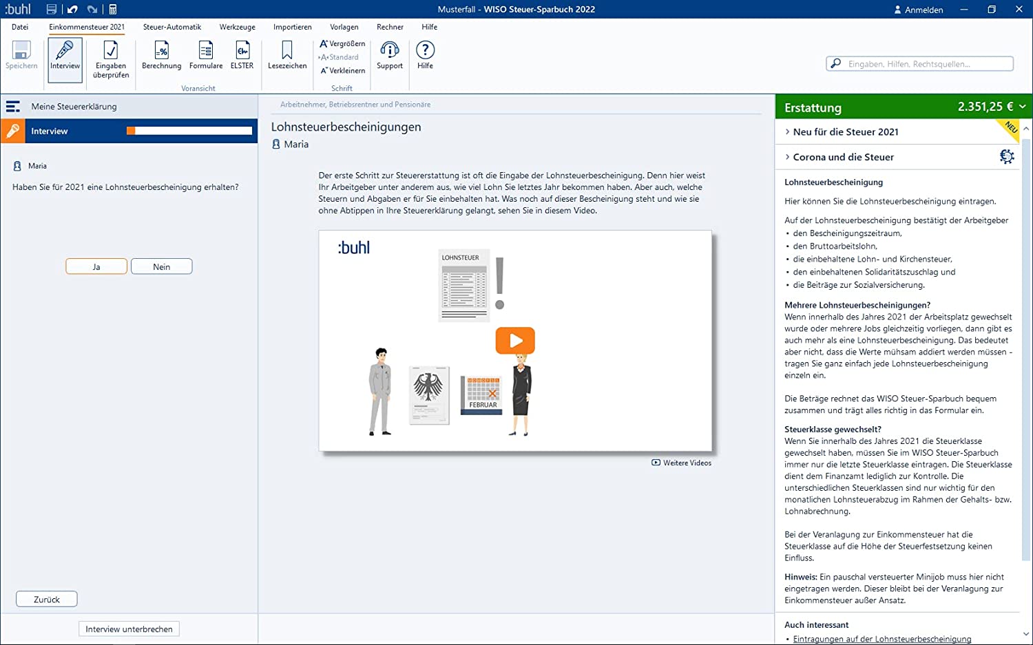 jedoch beinhaltet das angebot nicht nur einfache erklärungen und schritt-für-schritt-anleitungen. zusätzlich gibt es im inneren der software eine auswahl an passenden musterschreiben und einspruchsvorlagen, die frei verwendet werden können. diese dokumente können beispielsweise für die kommunikation mit dem örtlichen finanzamt verwendet werden. wenn ihnen die beschreibungen der einzelnen felder in der software wiso steuer sparbuch 2022 nicht ausreichen, kein problem. sie haben zugriff auf über 150 expertenvideos, die nützliche tipps und tricks enthalten und jederzeit abrufbar sind. darüber hinaus steht ihnen ein steuer-ratgeber als pdf zur verfügung, der zusätzliche tipps für maximale ersparnisse bereithält. machen sie also von dieser gelegenheit gebrauch und nehmen sie sich ausreichend zeit, um alle wichtigen informationen in ruhe durchzugehen.