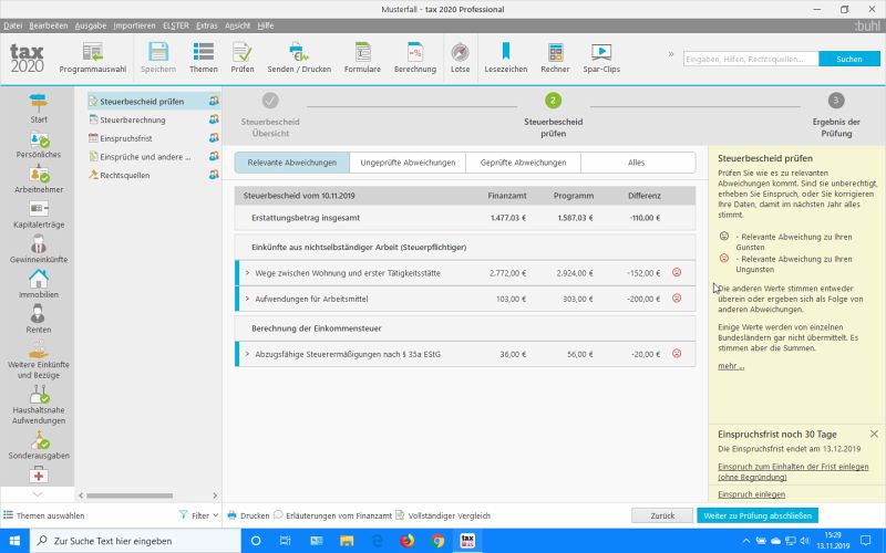 die software software-kaufen24 wiso tax 2020 professional steuerjahr 2019 bietet eine breite palette von funktionen, umfangreiche arbeit zu ermöglichen und zeichnet sich zugleich durch eine einfach zu bedienende und effektive benutzeroberfläche aus. selbst für personen, die sich im bereich der steuererklärung nicht auskennen, ist dieses programm definitiv eine gute wahl. es bietet umfangreiche und vielfältige informationen, um ihnen beim ausfüllen der formulare zu helfen. falls sie einmal unsicher sind, was in ein bestimmtes feld einzutragen ist, erhalten sie hilfreiche hinweise und nützliche tipps. dadurch wird die arbeit schnell vorangetrieben. eine schritt-für-schritt-anleitung durch die einzelnen formulare ist jederzeit gewährleistet, während sie ihren alltag mit der software-kaufen24 wiso tax 2020 professional steuerjahr 2019 erleben. wenn es um die kommunikation mit dem finanzamt und anderen stellen geht, bietet ihnen diese beliebte software von buhl ebenfalls attraktive vorteile und zahlreiche möglichkeiten. sie können beispielsweise auf die vielfältigen musterschreiben zugreifen, die für die kommunikation mit dem finanzamt verwendet werden können. wenn die arbeit mit der software-kaufen24 wiso tax 2020 professional steuerjahr 2019 sich dem ende nähert, sollten sie außerdem die integrierten checklisten nutzen. diese stellen alle benötigten unterlagen und belege dar. überprüfen sie die checkliste vor der erfolgreichen einreichung, um verzögerungen oder nachfragen seitens des finanzamts zu vermeiden.